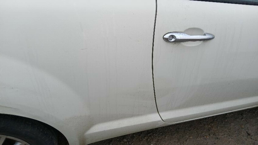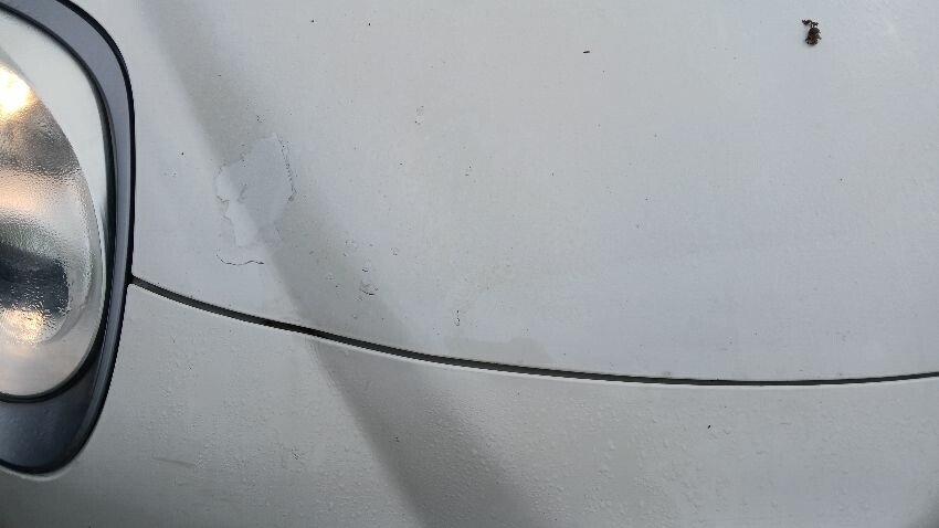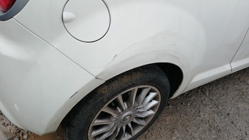 Front bumper, bonnet, n/s front door, n/s wing mirror, n/s rear quarter, rear bumper, boot lid, o/s rear quarter, o/s door, o/s front wing, scuffs and scratches all over, general wear and tear for age and mileage, engine knocking, runs rough, exhaust smoky,