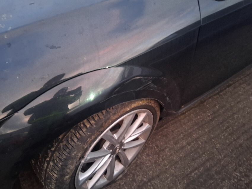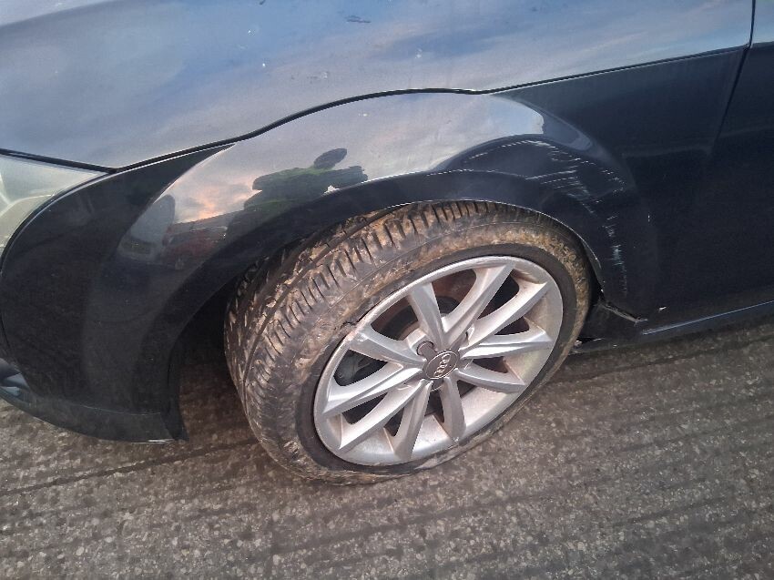 Rear bumper, o/s quarter, o/s door, o/s mirror, o/s wing, front bumper, bonnet, grille, n/s wing, n/s mirror, n/s/front wheel out of alignment so arms possibly snapped, n/s door, n/s quarter, general wear and tear and scratches.