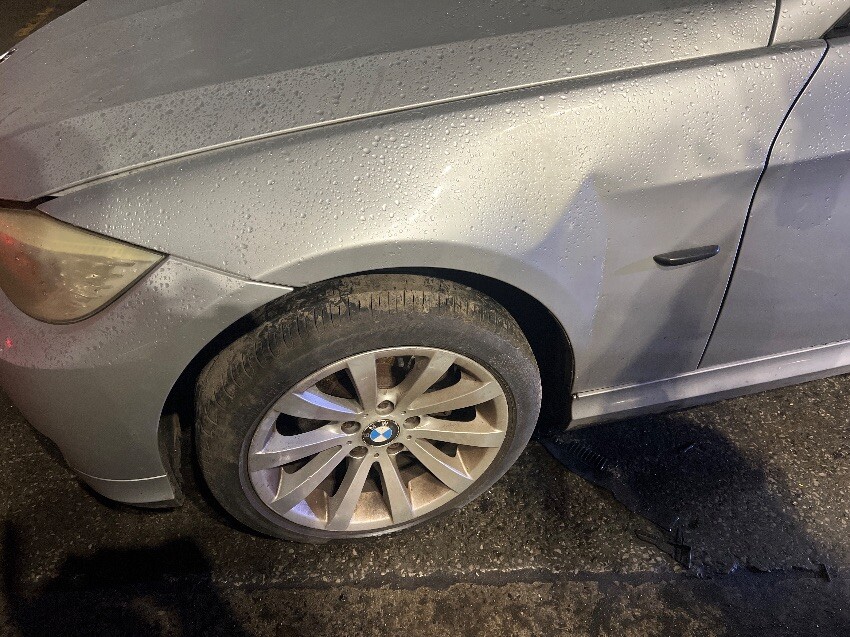 Front bumper, nearside front wing, nearside wing mirror, rear bumper,