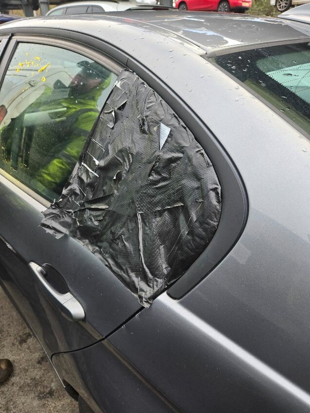 Offside front wing rust, offside rear door damage, rear bumper damage , near side window smashed or missing, near side door damaged, general wear and tear, clutch rattling when pressed in