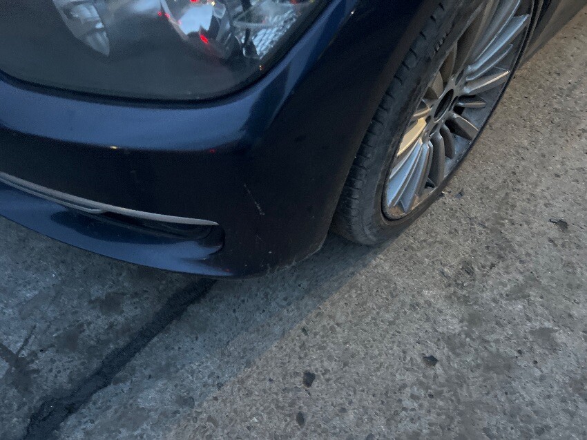 Front bumper, nearside front window open, offside front passenger door, driver seat, offside rear wheel arch, engine light, engine knock, general wear and tear.
