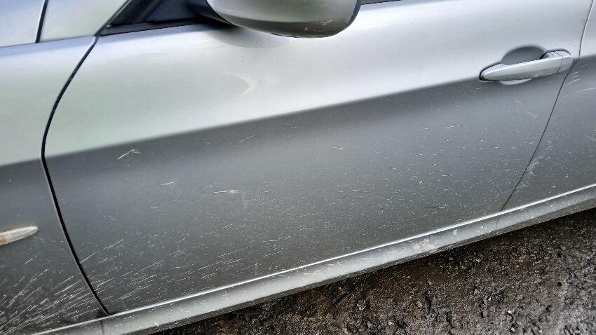 Front bumper, bonnet, n/s wing mirror, n/s rear door, n/s rear quarter, rear bumper, o/s rear quarter, o/s rear door, o/s front door, o/s front wing, scuffs and scratches all over, general wear and tear for age and mileage, engine knocking,