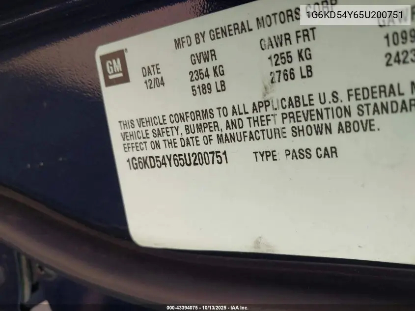 CADILLAC DE VILLEVIII 2005