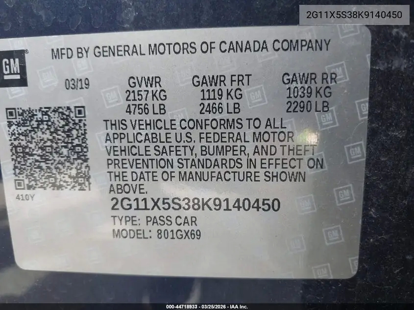 CHEVROLET IMPALAX 2019