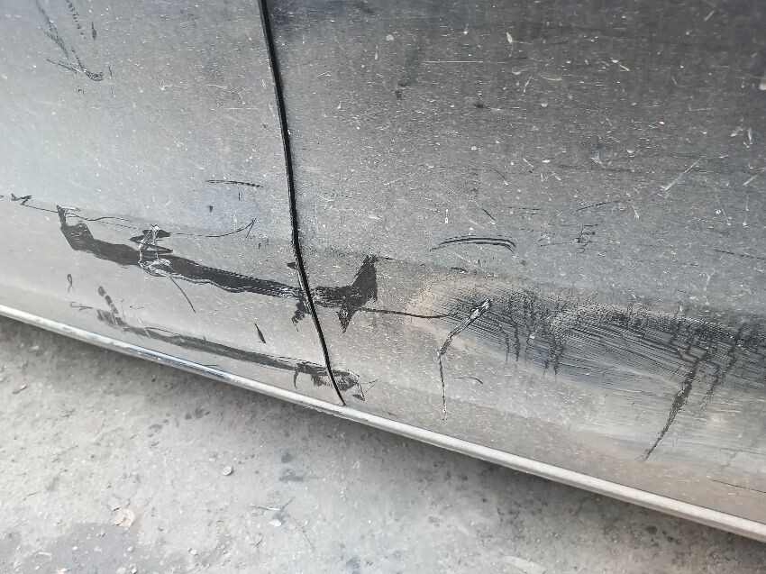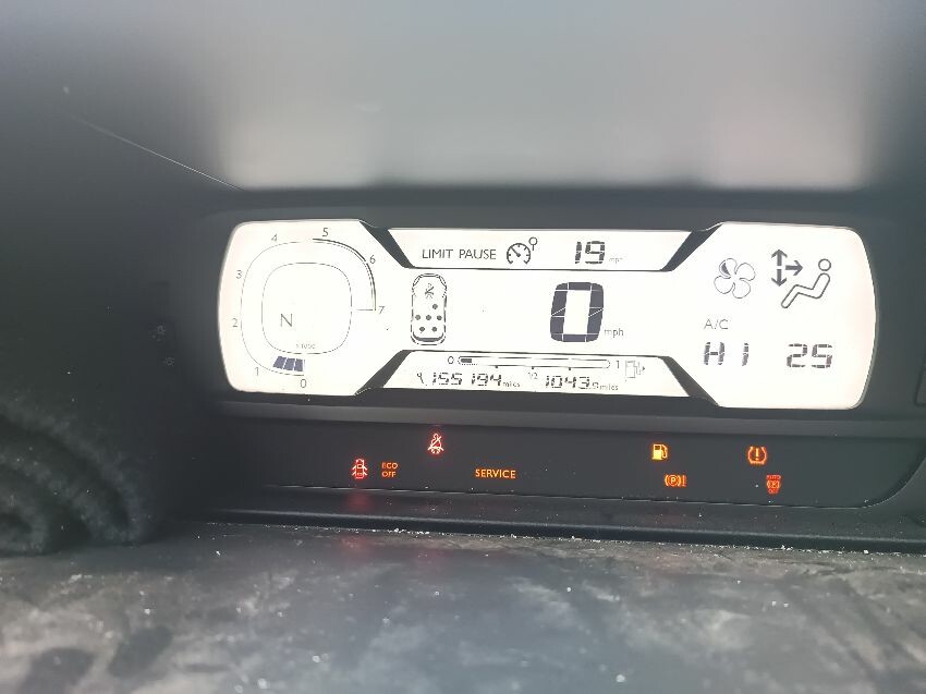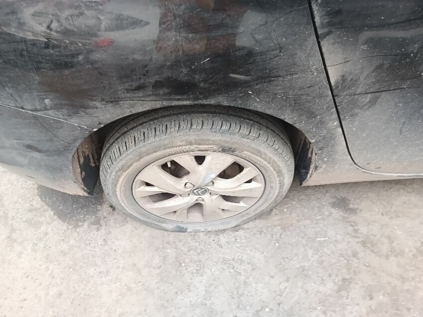 Parking brake fault, low fuel, service light is on, tires pressure light is on, rubbish in interior, drivers rear tyre is flat, front bumper is damaged, passenger front & rear door are scratched, general wear and tear.
