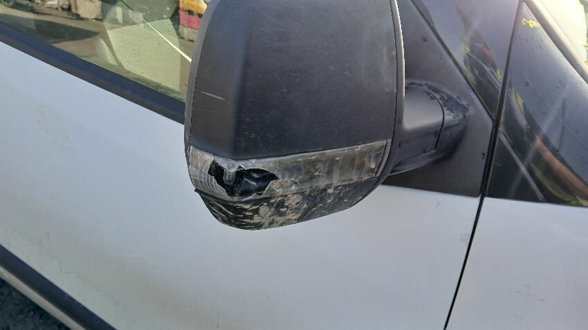 Front bumper, front windscreen, n/s front door, n/s rear quarter, rear bumper, both rear doors, o/s rear quarter, o/s door, o/s wing mirror, scuffs and scratches all over, general wear and tear for age and mileage, interior soiled and damaged, multiple warning lights on dash, engine knocking, runs rough