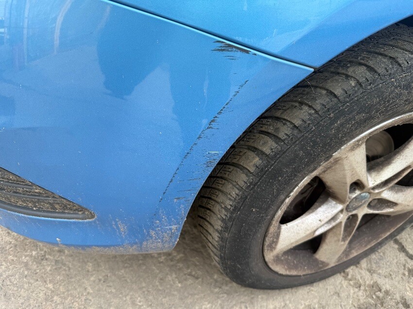 Rear bumper, osf door, front bumper, general wear and tear.