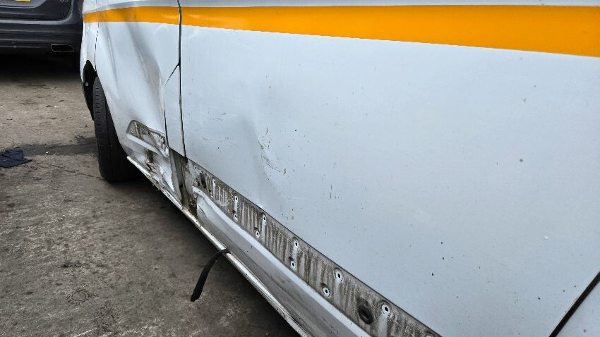 Bonnet release broken, front bumper damaged, bonnet damaged, o/s/f light damaged, o/s/f wing damaged, n/s/f wing damaged, o/s/f door damaged, n/s/f door damaged, n/s/r door damaged, o/s wing mirror damaged, n/s/r panel damaged, rear doors damaged, general wear and tear,