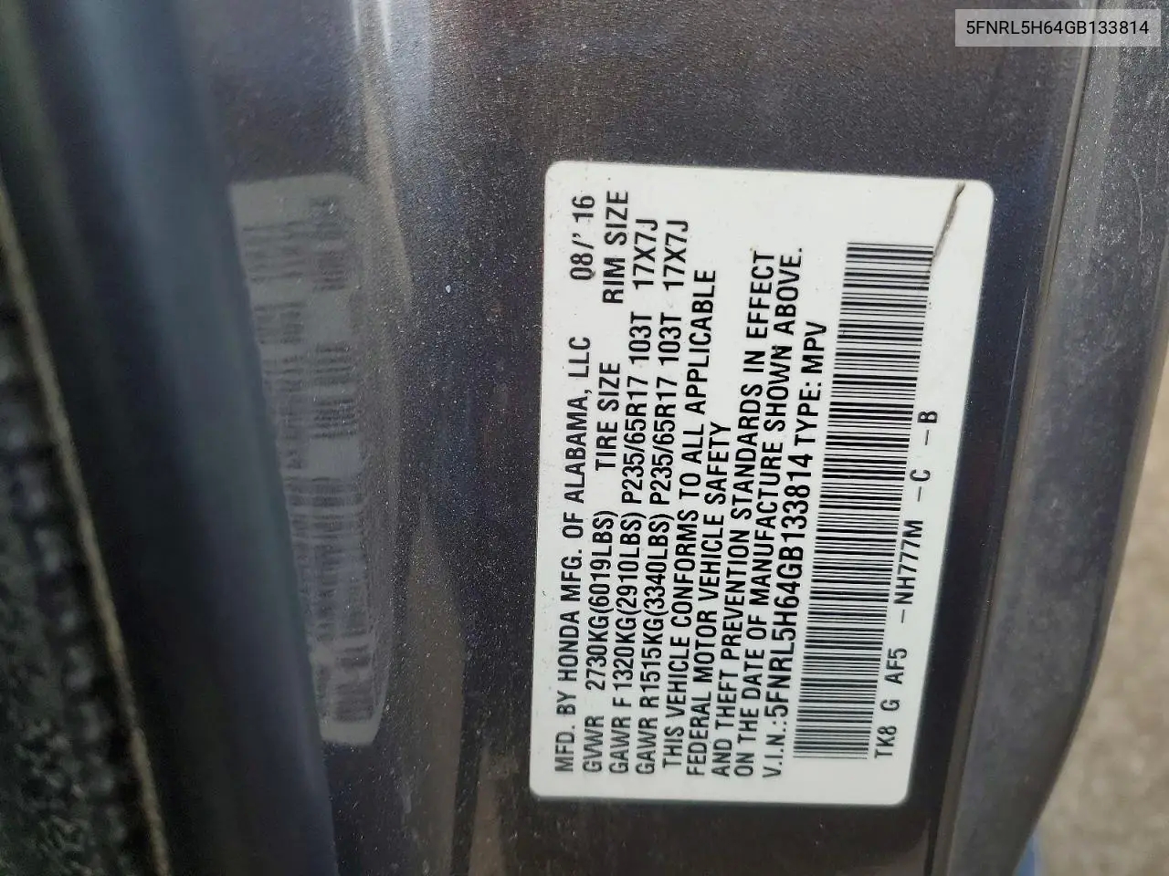 HONDA ODYSSEY 2016