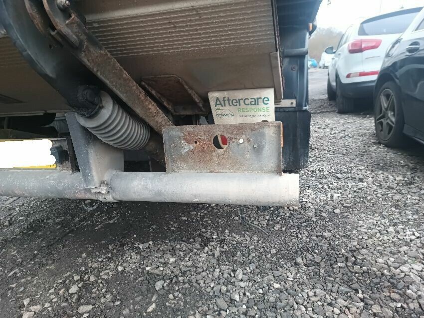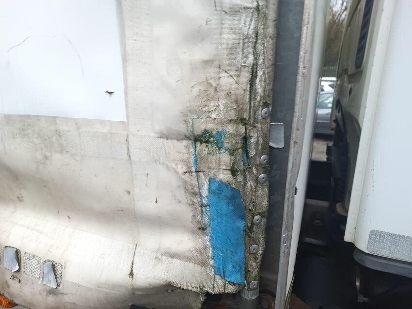 Center console vents are damaged, passenger side door stiff to open, passenger side seat plastics damaged, rust on tail lift, missing drivers tail light, perished rubbers, damaged passenger guard rails, loose hydraulic motor cover, torn drivers front curtain, general wear & tear
