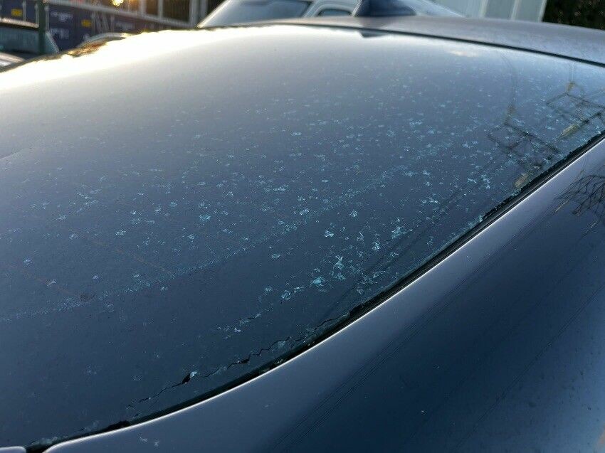 Rear window is smashed, paint peel on bonnet, front bumper scratches