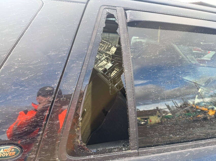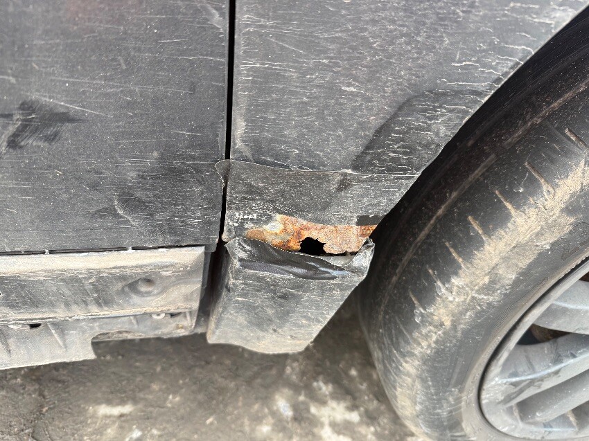 Locked, rear bumper, o/s/r window, o/s/f window, o/s/f door, o/s wing, o/s mirror, front bumper, n/s/f door, general wear and tear.