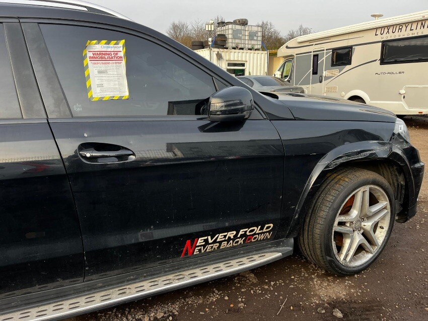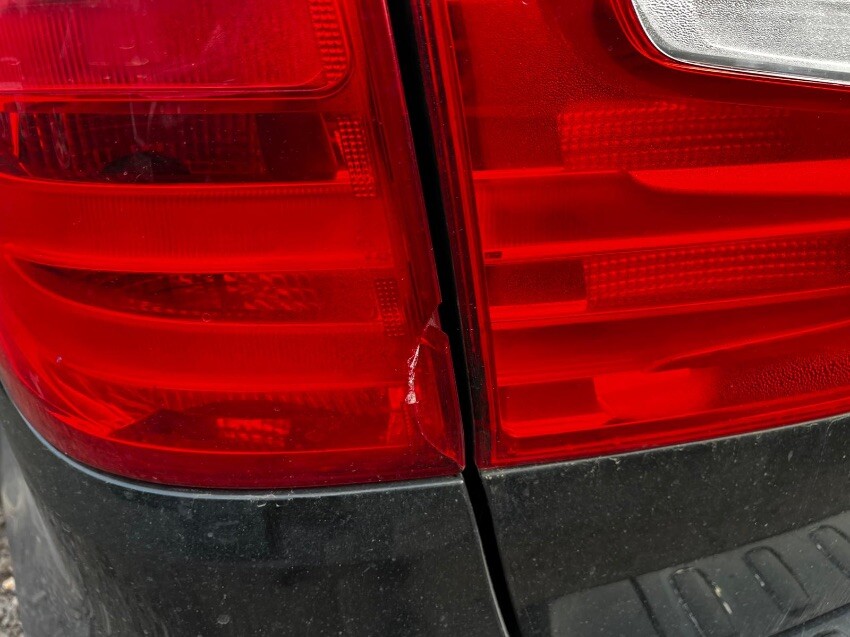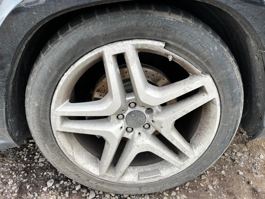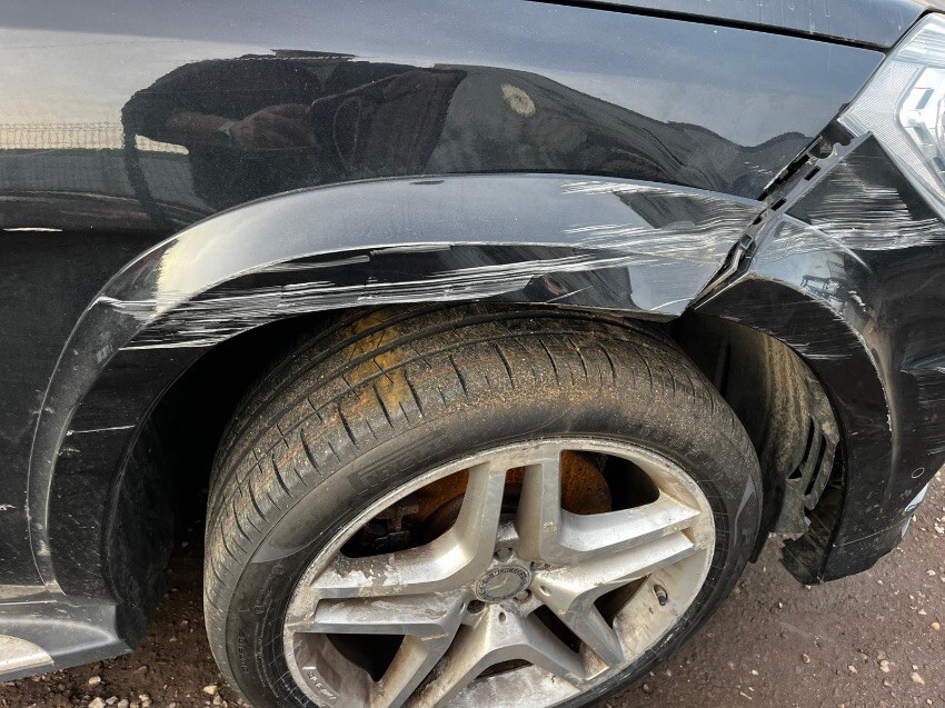 Scrape damage drivers side wing & bumper, cracked front bumper and trims missing, crack rear passenger side alloy, slight crack on rear light,