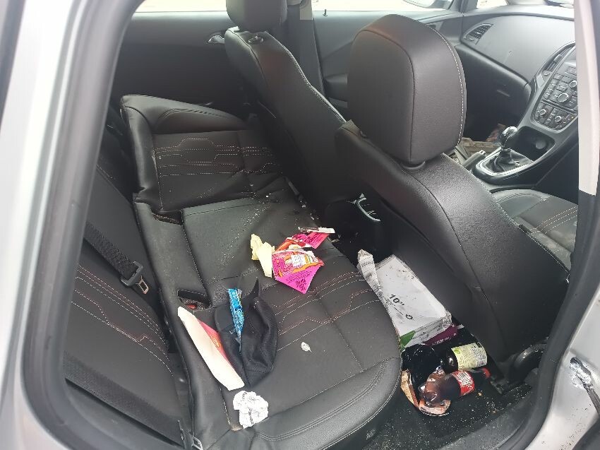 Rear bumper loose, panel damaged passenger side rear, minor scratches on front bumper, rear seat loose, general wear & tear