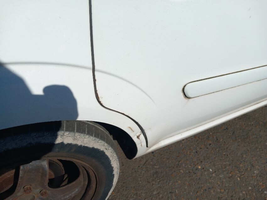 Exhaust blow, front bumper, bonnet, o/s door, o/s quarter, rear bumper, n/s complete, age and mileage related wear and tear all over.