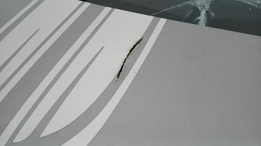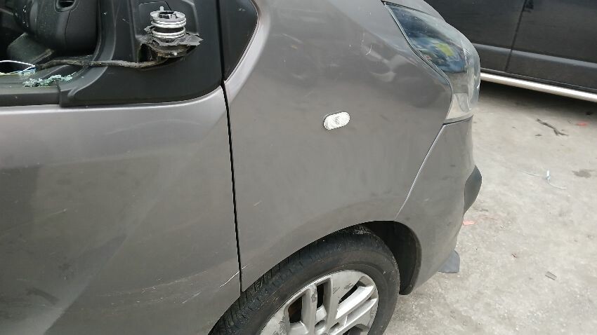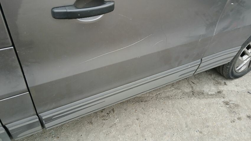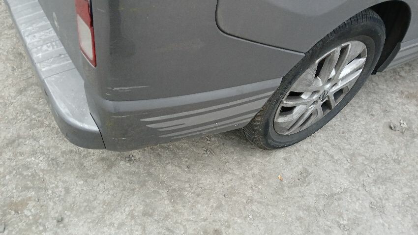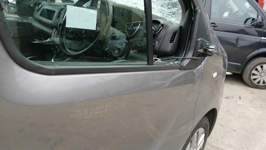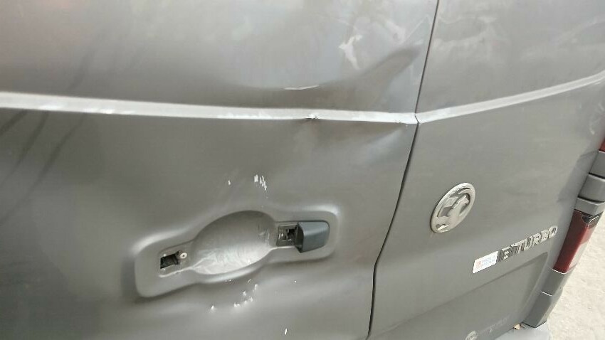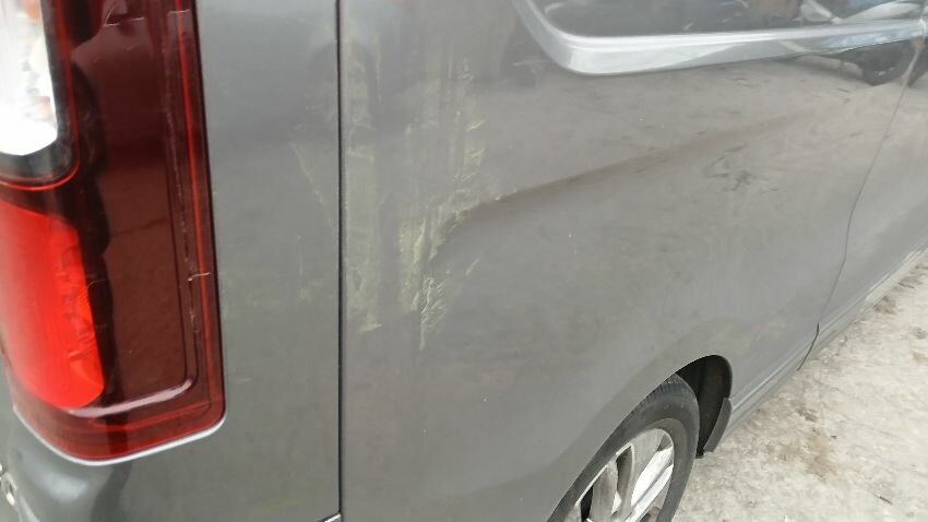 Front bumper, bonnet, front windscreen, n/s wing mirror, n/s front window smashed, n/s sliding door, n/s rear quarter, rear bumper, both rear doors, o/s rear quarter, o/s body panel, o/s door o/s front quarter window smashed, o/s wing mirror missing, o/s front wing, scuffs and scratches all over, general wear and tear for age and mileage