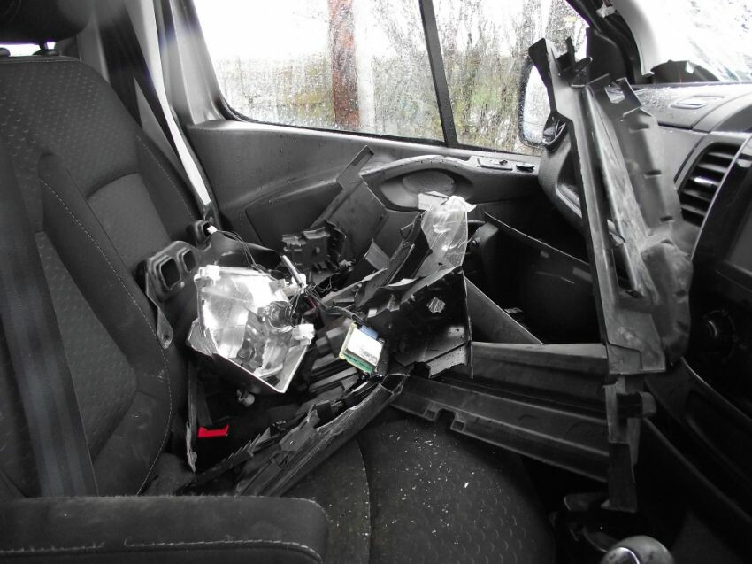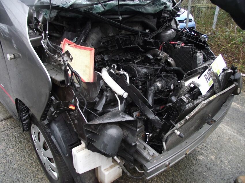 Damage to: all panels ahead of bulkhead, bulkhead (shell twisted to offside),2 x "a"-posts, offside "b"-post, roof, windscreen, all front lamps, radiator pack, engine rocker cover, fuse box, wiring, various under bonnet plastics, front seatbelt, 1 x airbag, no ignition, & front brakes jammed on.