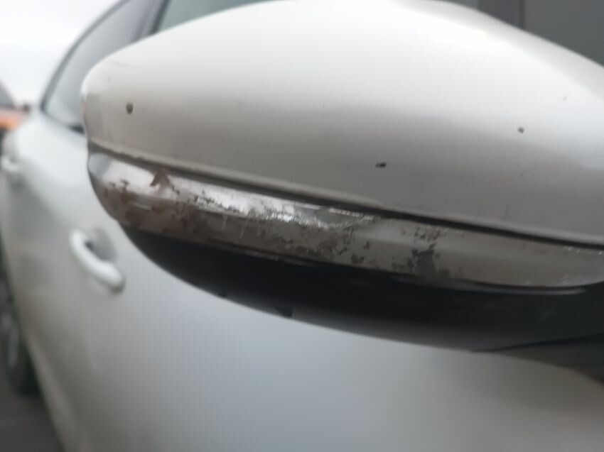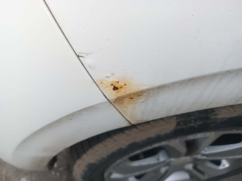 Rust spots on drivers rear fender, cracked passenger wing mirror light, cracked driver's side wing mirror light