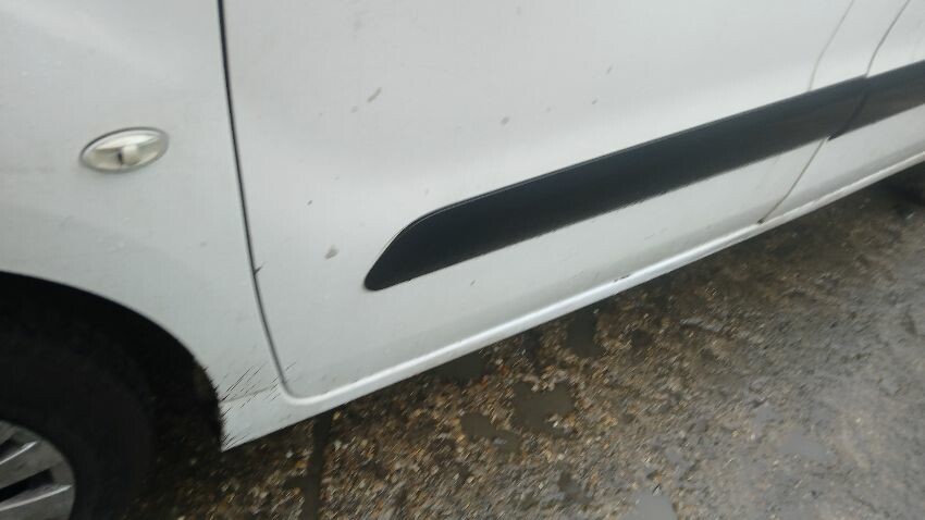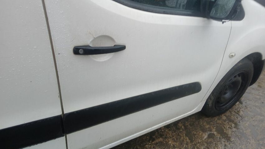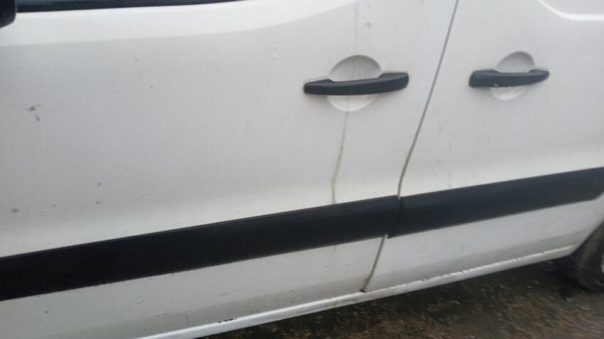 Front bumper, bonnet, front windscreen cracked, n/s front wing, n/s front door, n/s sliding door, n/s rear quarter, rear bumper, both rear doors, o/s rear quarter, o/s door, o/s wing mirror, o/s front wing, scuffs and scratches scratches all over, general wear and tear for age and mileage, interior damaged, engine knocking, handbrake faulty