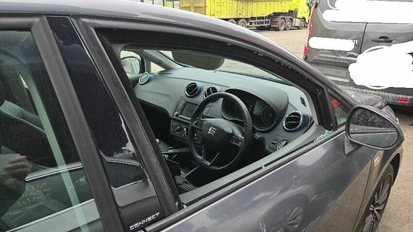 Front bumper damaged, o/s/f wing damaged, n/s/f wing damaged, bonnet damaged, o/s/f window shattered, n/s/f door damaged, n/s wing mirror damaged, rear bumper has scuffs and scratches, o/s/r door scratched, interior in poor condition, general wear and tear,