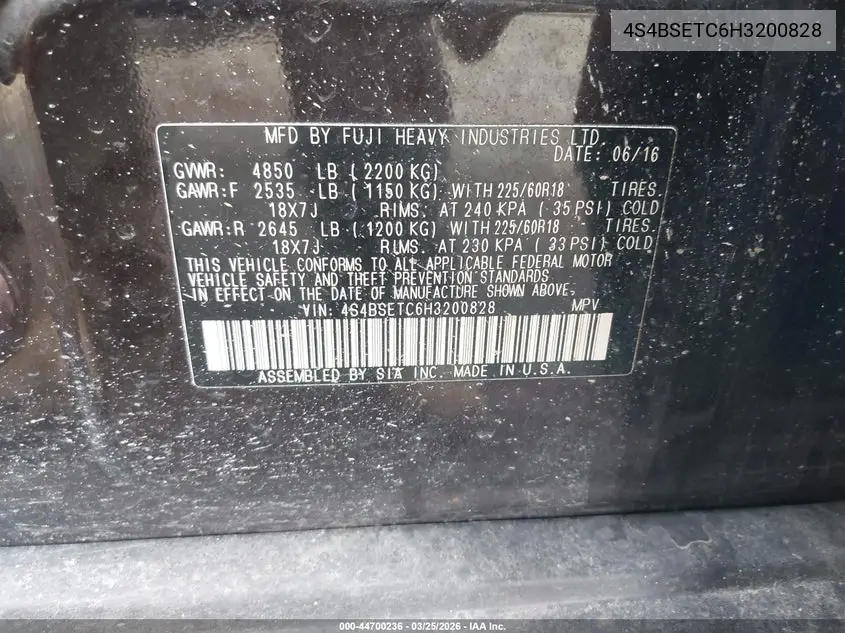 SUBARU OUTBACKV 2017