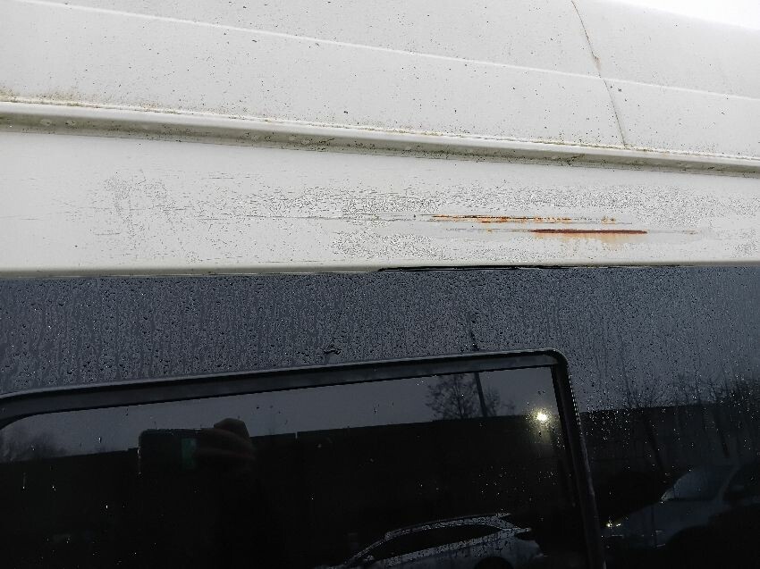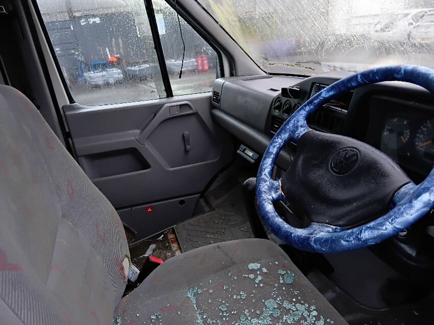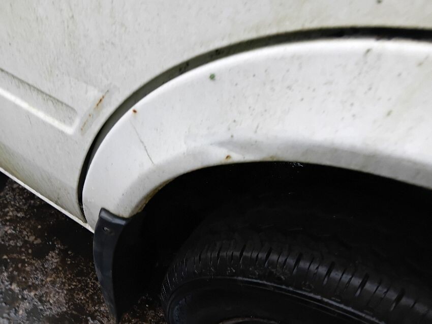 Front bumper, rust all around, n/s side door, n/s rear panel, rear doors, o/s rear light, o/s rear panel, o/s side panel, drivers door glass smashed. general wear and tear/ scratches