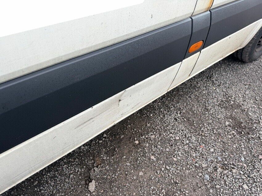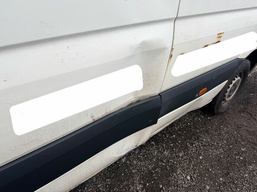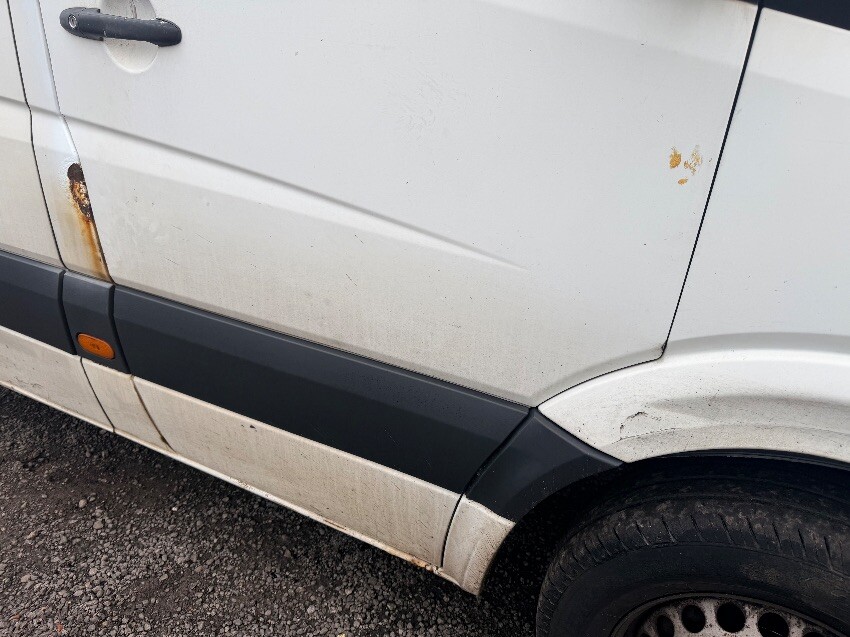 Front o/s wind damaged, rust near drivers door. bumper step cracked. front n/s wing damaged. dent on n/s sliding door and rear panel. rear bumper and door dented. rust near o/s rear light, light cracked. dent on o/s panel. other general wear and tear.