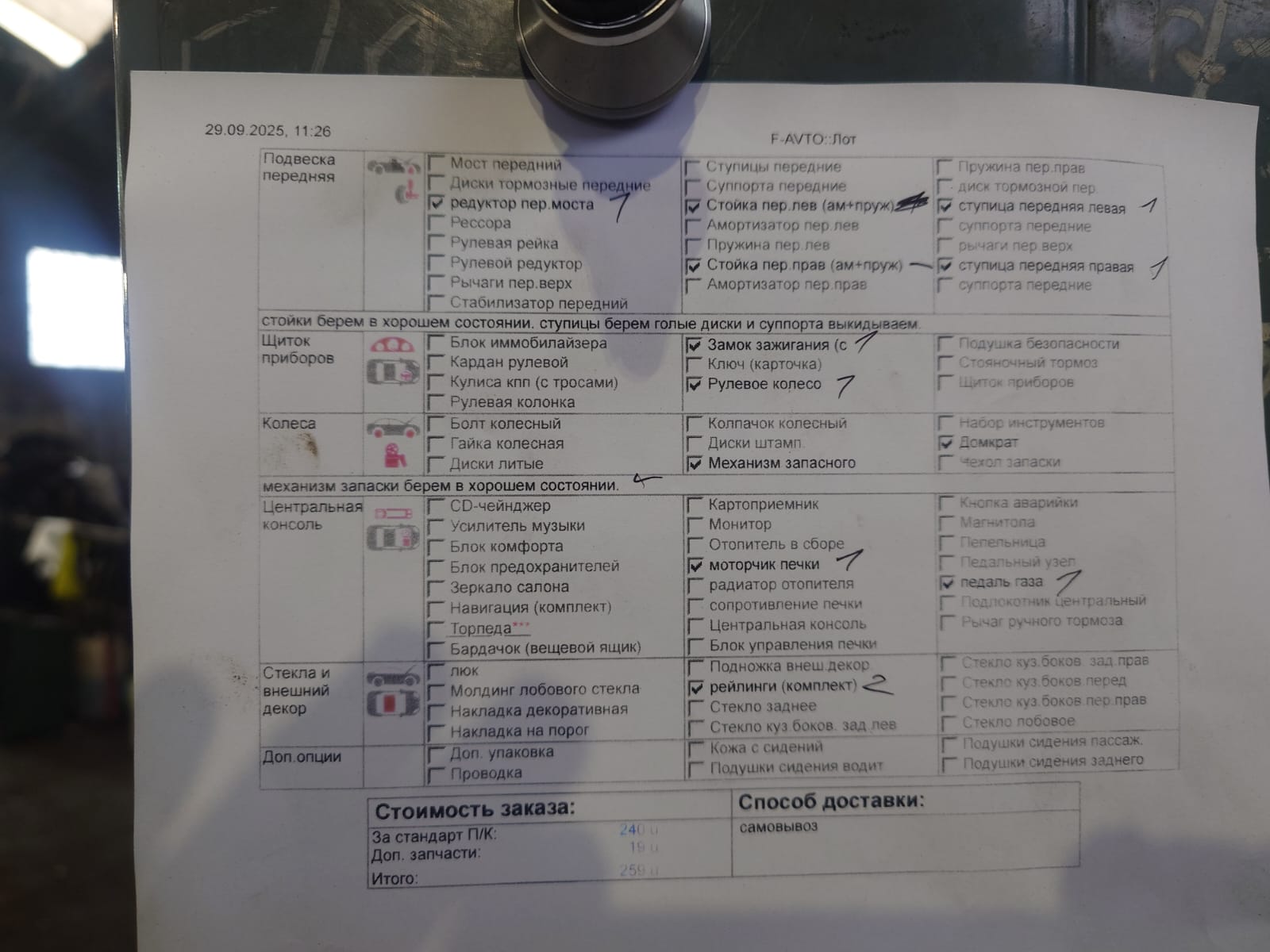 Полукомплект (П/К) - представляет собой разобранный автомобиль следующей комплектности: