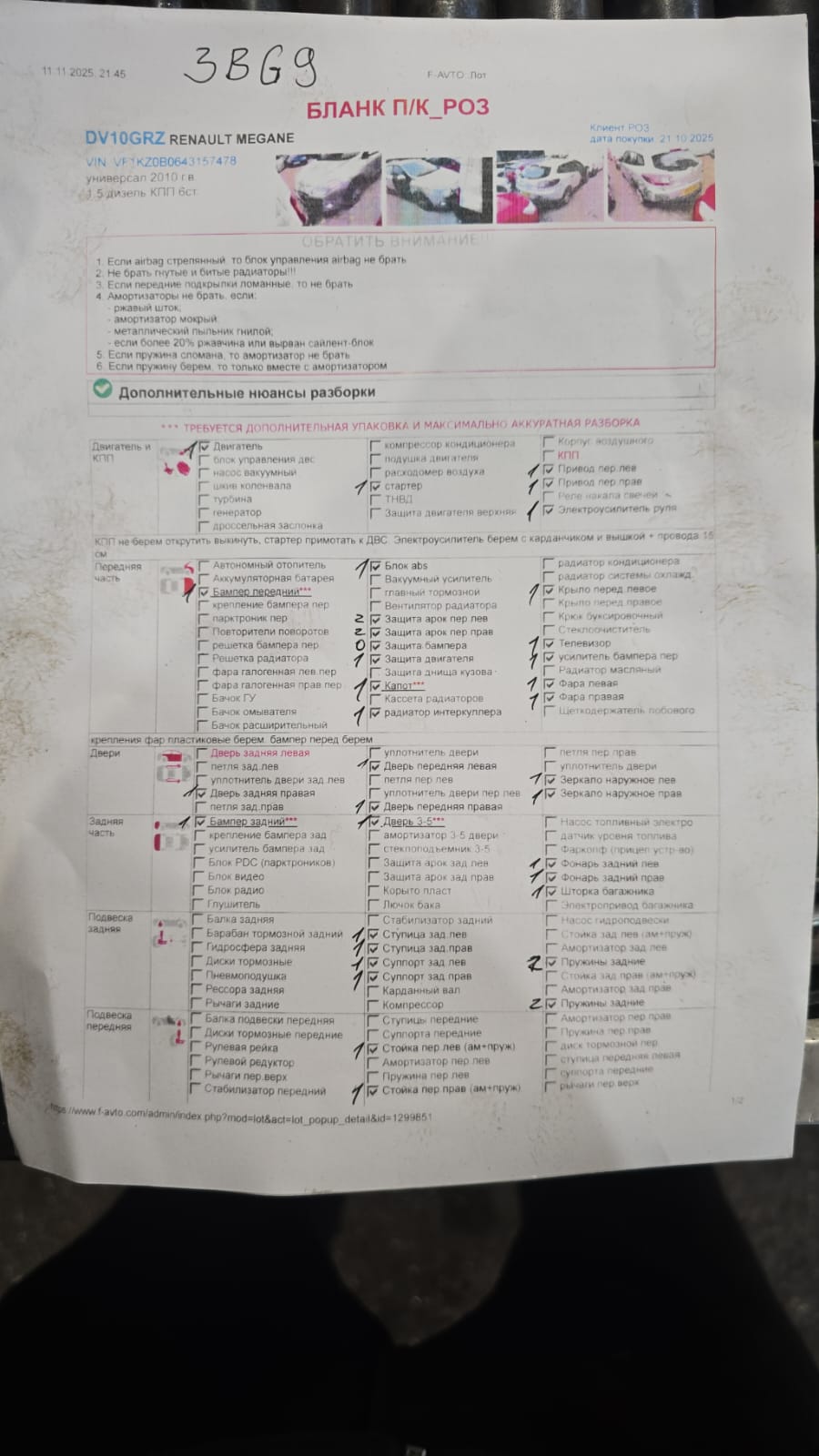Полукомплект (П/К) - представляет собой разобранный автомобиль следующей комплектности: