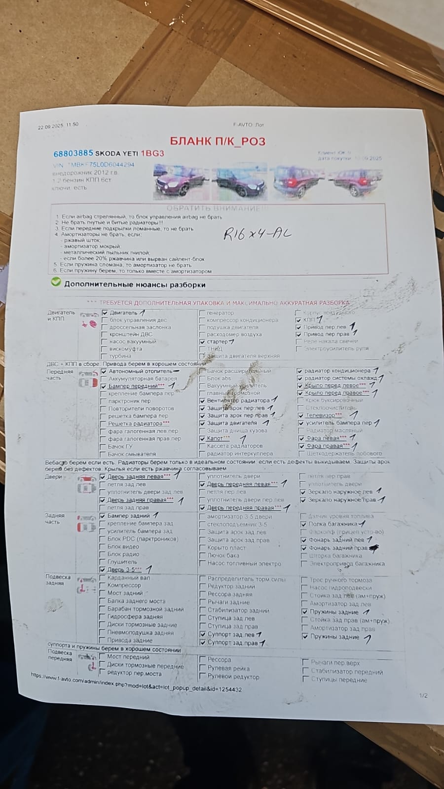 Полукомплект (П/К) - представляет собой разобранный автомобиль следующей комплектности: